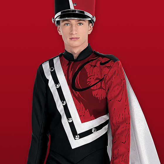 Explore our full line of marching band gear, including bibbers, jackets, drum major uniforms, shakos, military headwear, gloves, and plumes. We specialize in custom marching band uniform design and digitally printed color guard flags with top-quality flag fabrics and fast production timelines.