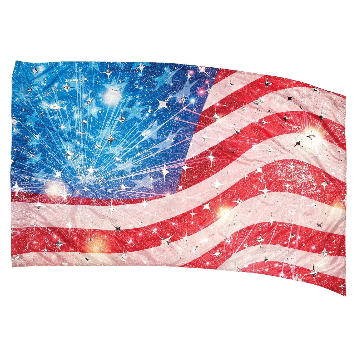 As Shown: Â Fireworks and Flares Patriotic American Flag Illustration with Silver Fused Metallic