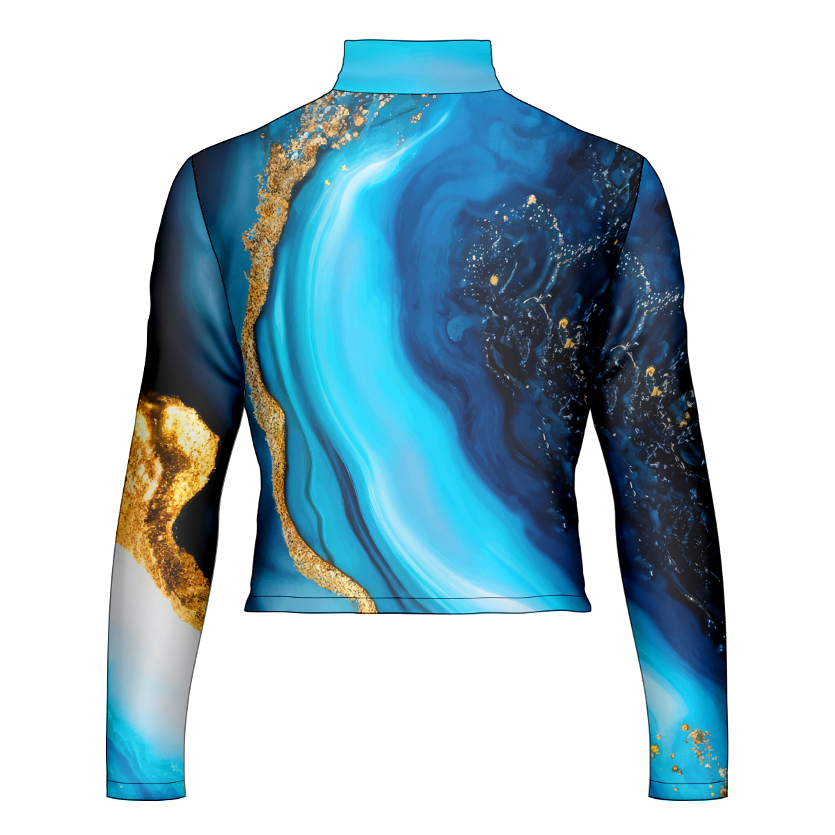 One silhouette – unlimited possibilities! Band Shoppe designs, print, and sews all custom marching tops in the USA using a durable heavyweight poly/spandex blend. Each pull-on top features a comfortable 2″ mock turtleneck, standard length sleeves, shoulder pads for a structured look, and a zippered pull-on entry for easy wear. Built-in underarm gussets provide improved range of motion, making these tops ideal for high-energy performances. Designed for comfort, style, and movement, this performance-ready top keeps your group looking sharp from rehearsal to finale.