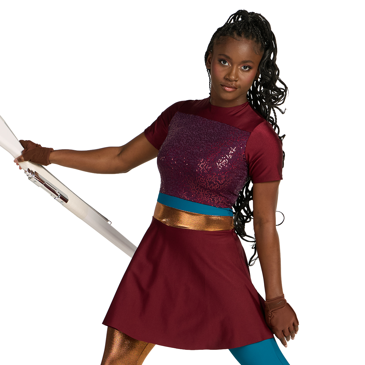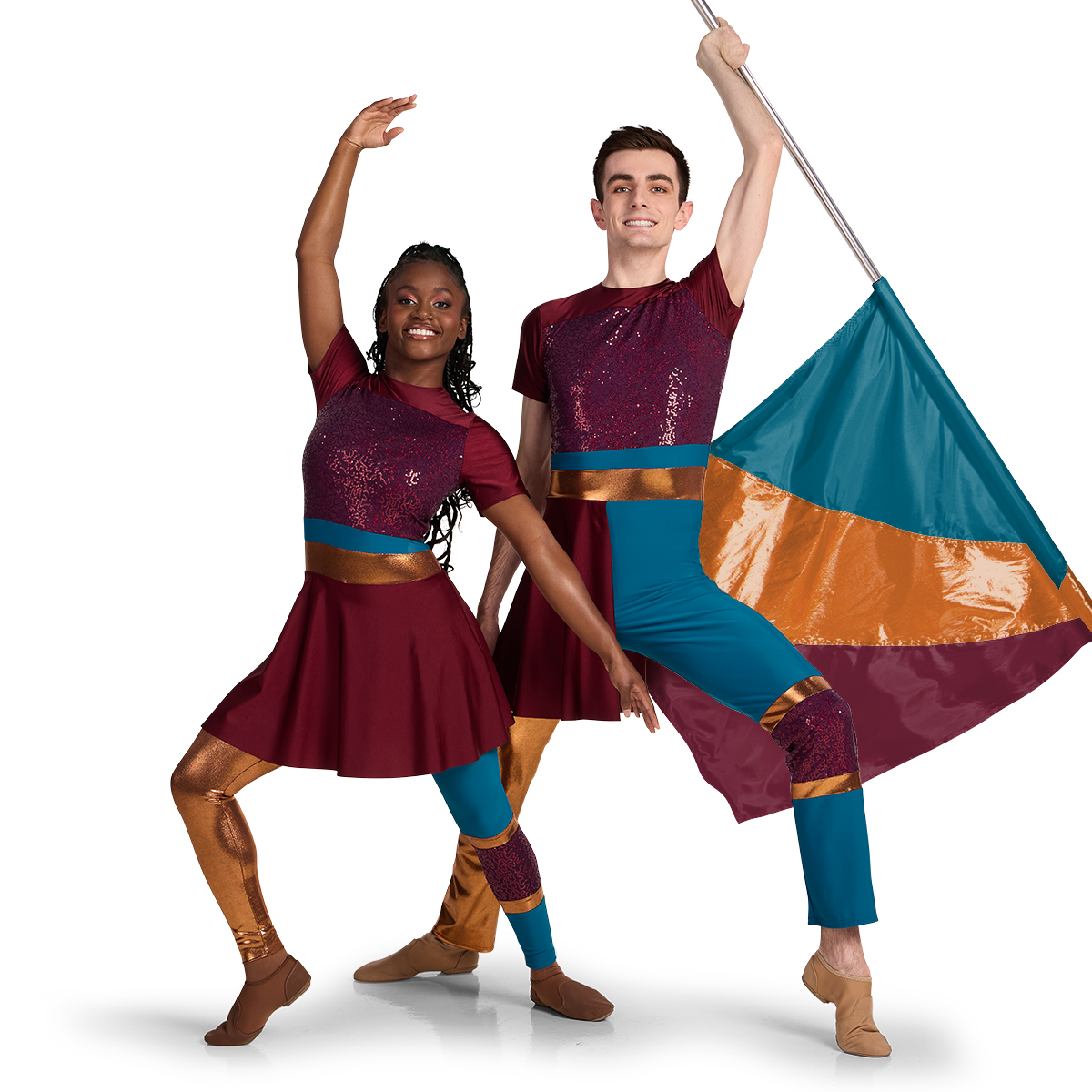 Band Shoppe’s custom color guard uniforms are designed and sewn in the USA with performance in mind. From vibrant 4-way stretch spandex to eye-catching sequins, metallics, and mesh, our fabrics are chosen to move beautifully under stadium lights or or center stage. You can customize any look in our collection with your choice of colors and materials, or start from scratch and design your own color guard uniform. Whether you’re preparing for a field show, winter guard, or WGI competition, our team is here to help you create a look that fits your show and your team perfectly.