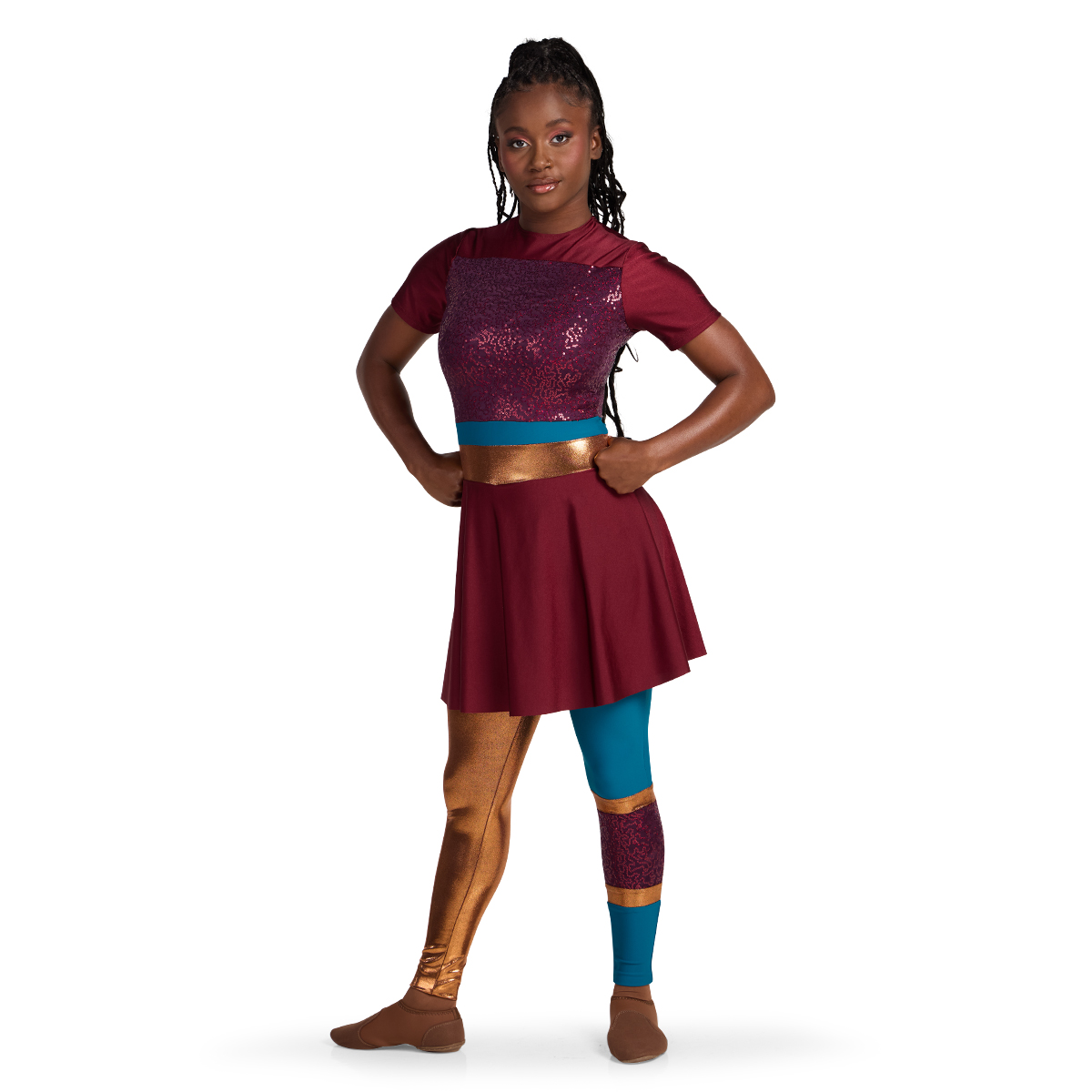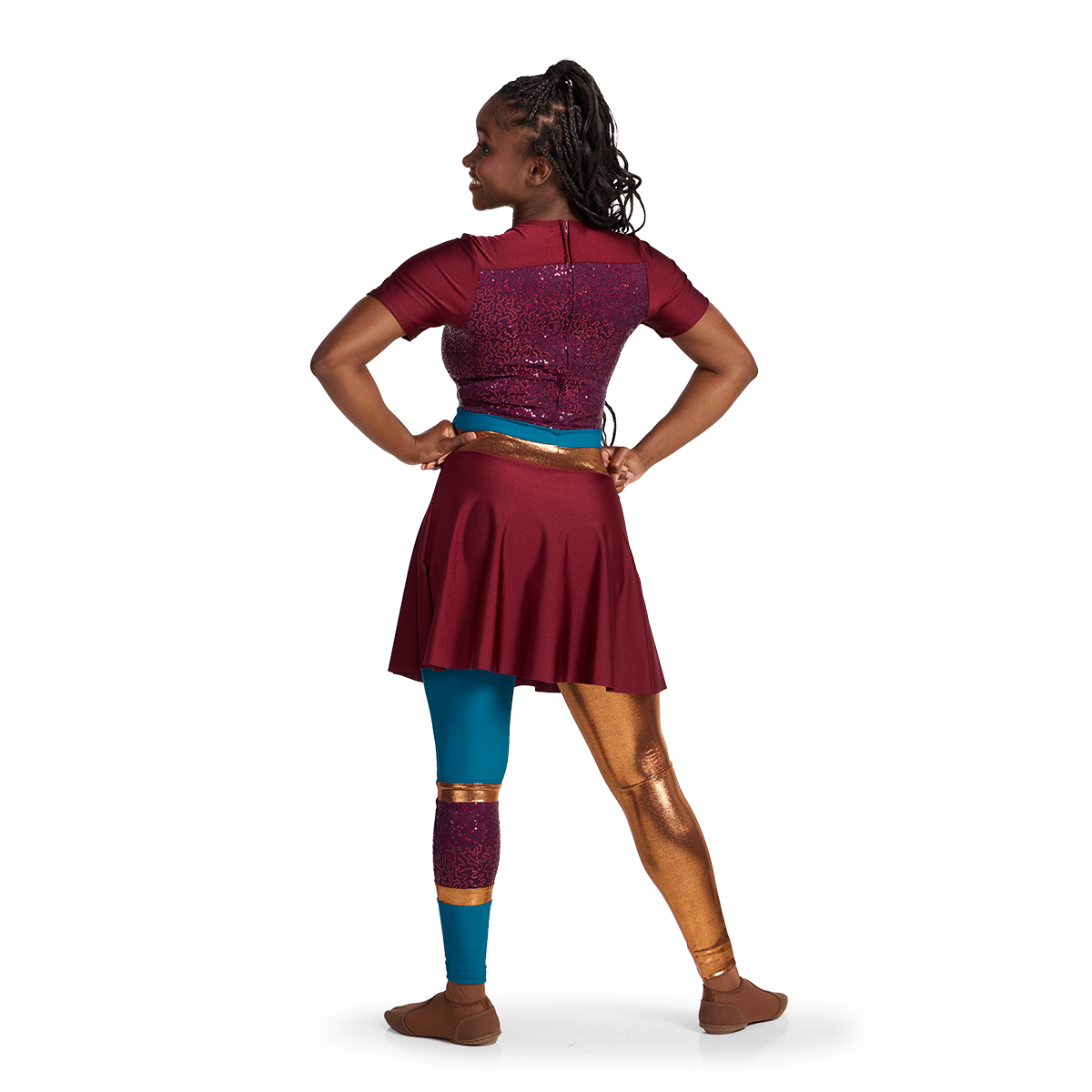 - Shown in: Copper Mystic Jewels, Mallard Matte Spandex, Burgundy/Wine Micro Sequin, Maroon Satin Spandex