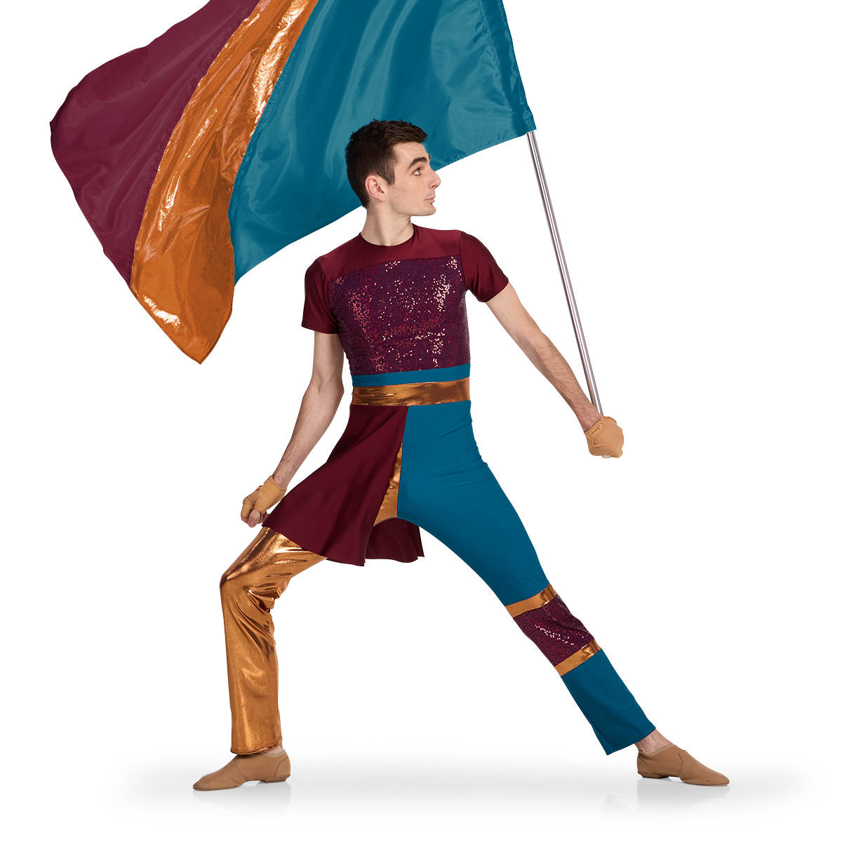 Band Shoppe’s custom color guard uniforms are designed and sewn in the USA with performance in mind. From vibrant 4-way stretch spandex to eye-catching sequins, metallics, and mesh, our fabrics are chosen to move beautifully under stadium lights or or center stage. You can customize any look in our collection with your choice of colors and materials, or start from scratch and design your own color guard uniform. Whether you’re preparing for a field show, winter guard, or WGI competition, our team is here to help you create a look that fits your show and your team perfectly.