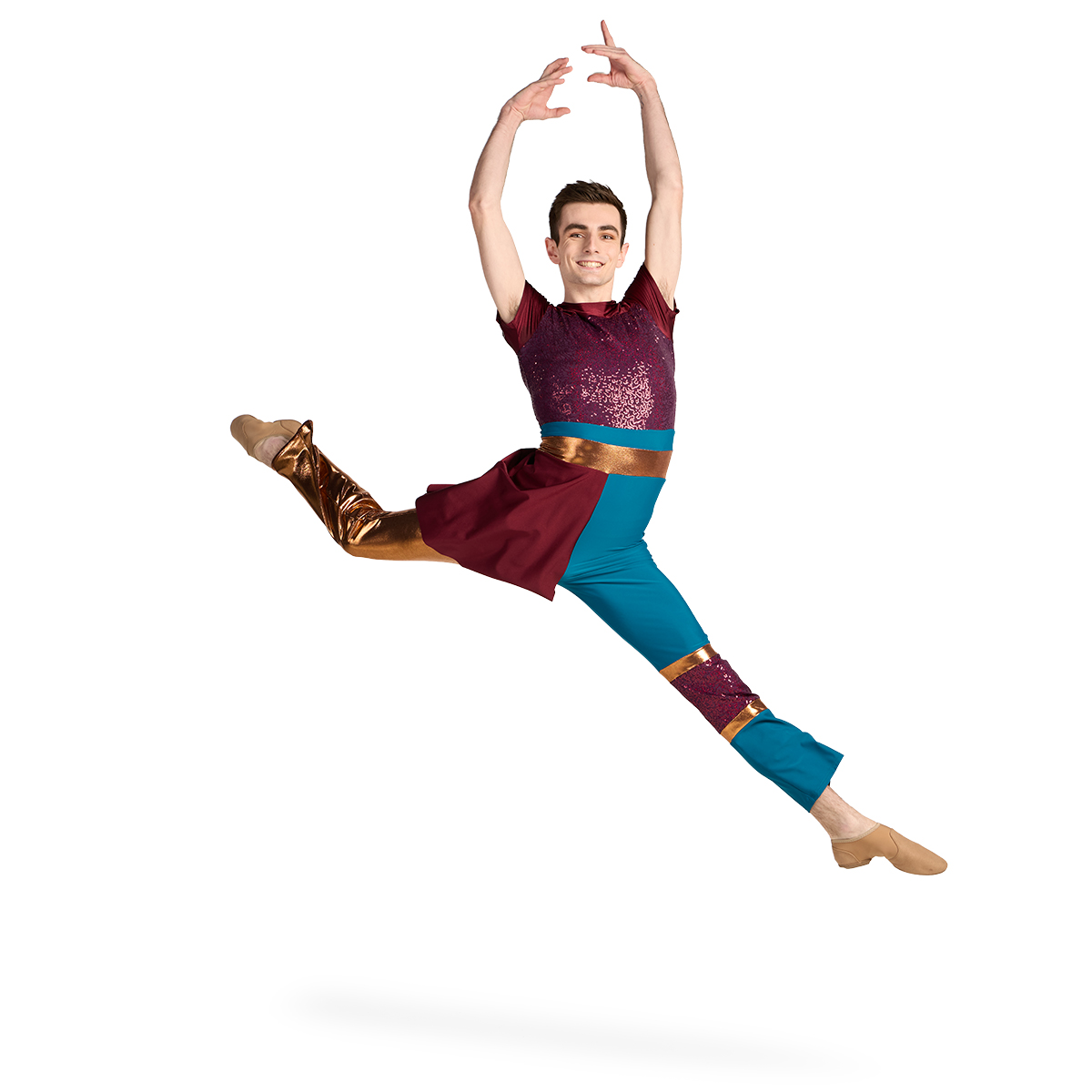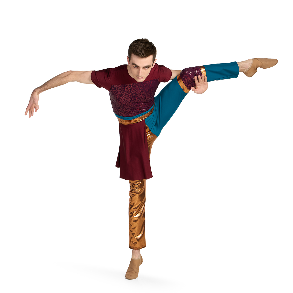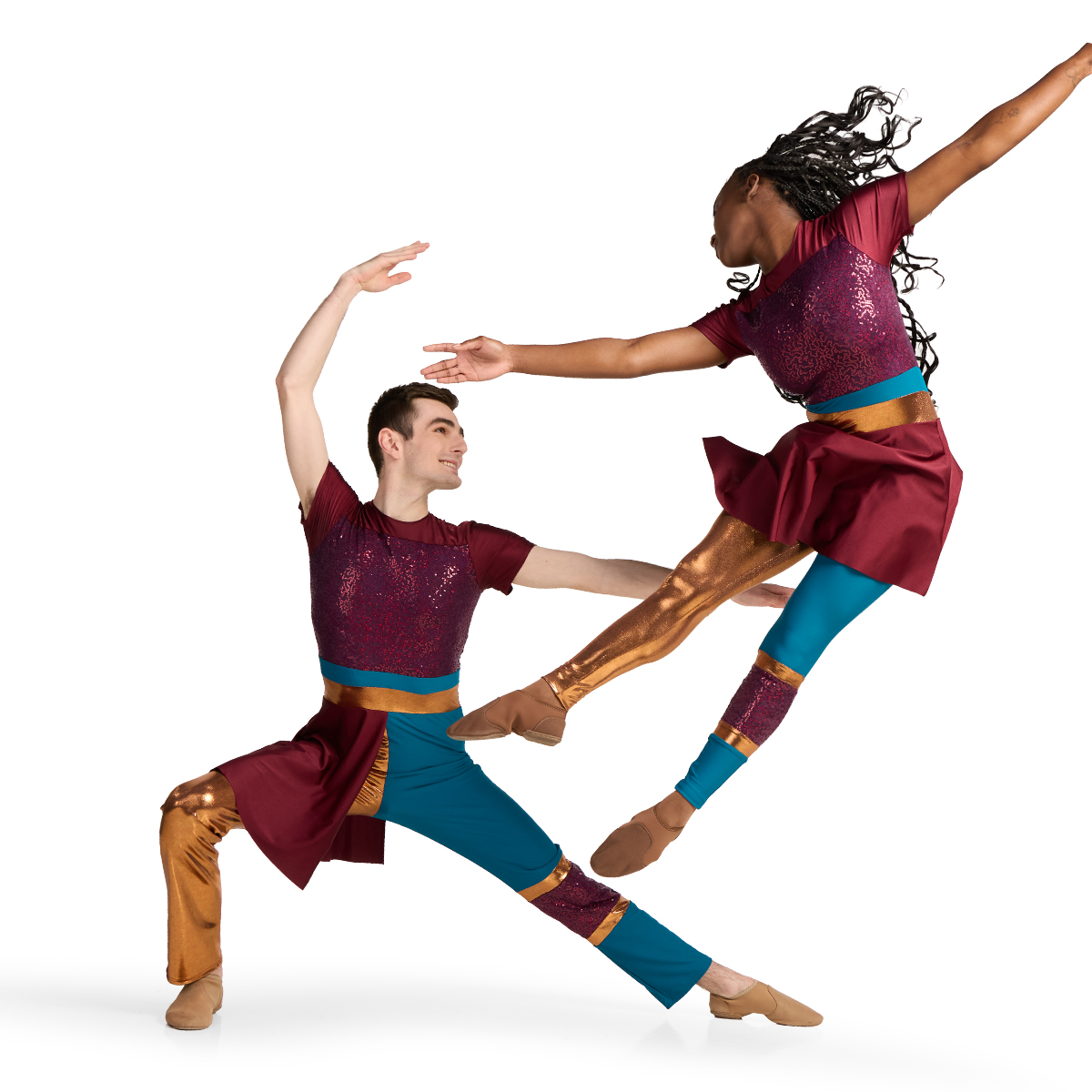 - Shown in: Copper Mystic Jewels, Mallard Matte Spandex, Burgundy/Wine Micro Sequin, Maroon Satin Spandex