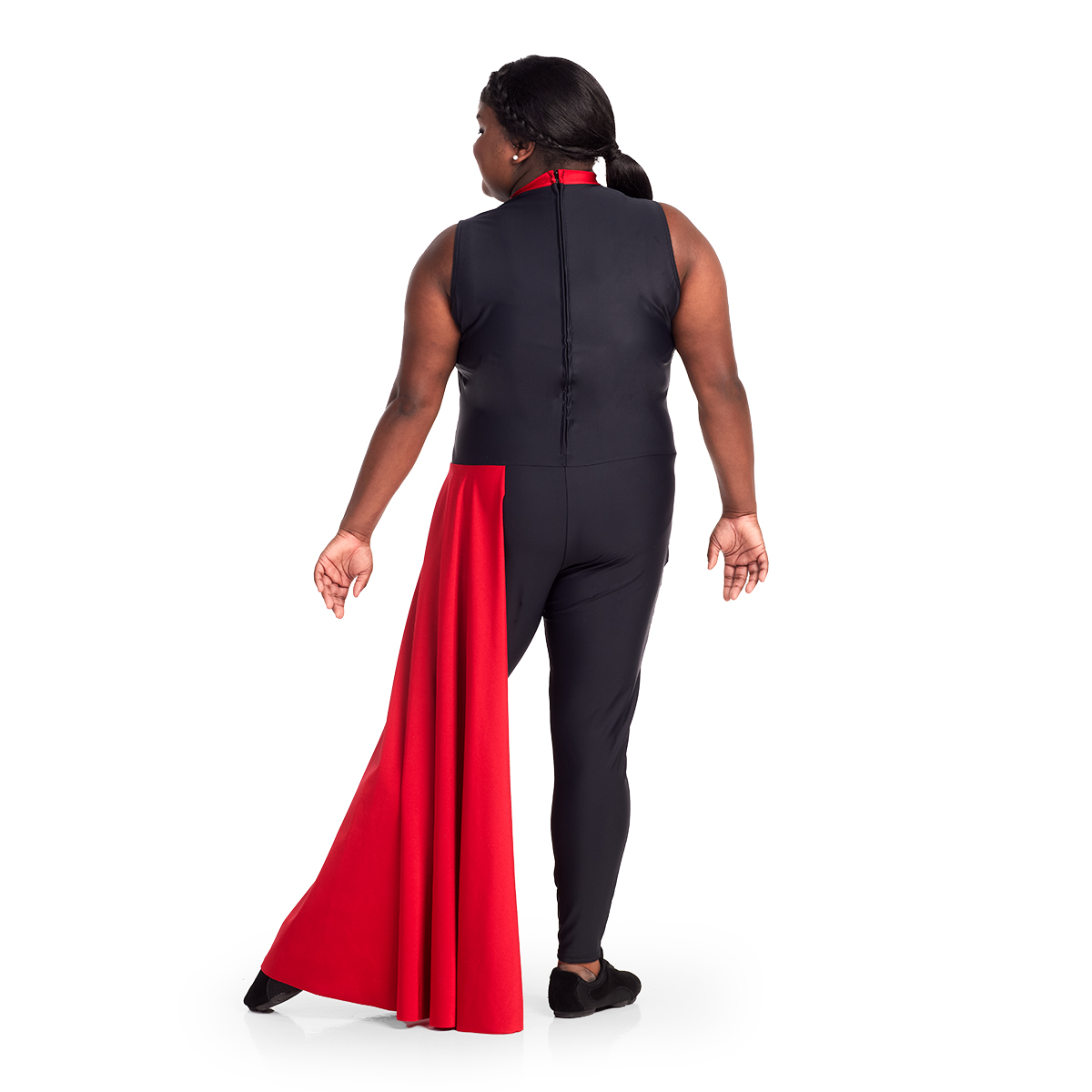 Sleeveless Legging Unitard with Mock Turtle Neck Collar and Side Skirt, Zippered Back Entry