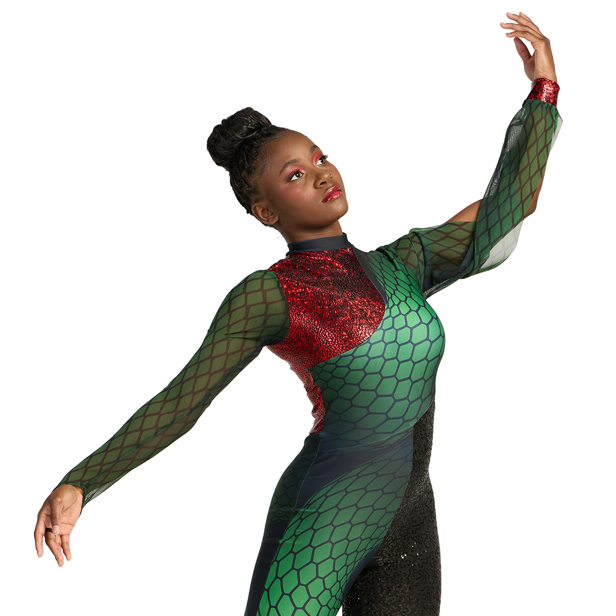 • Shown in:  Black Micro Sequin, Printed Matte Spandex, Red Avatar, Printed Power Mesh