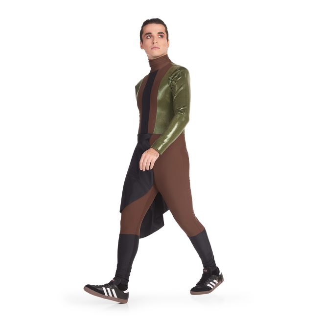 4222411 – Long Sleeve Legging Unitard with Side Skirt and Gathered Turtle Neck, Zippered Back Entry