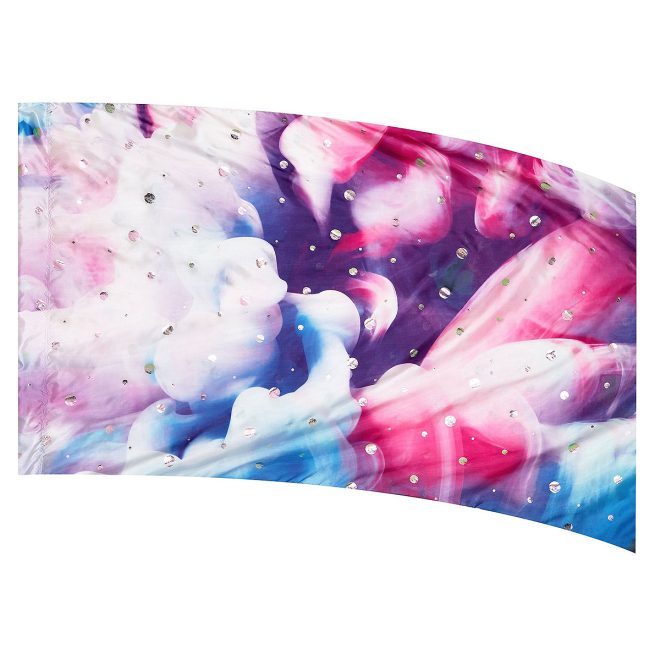 As Shown: Pink, Purple, Blue, and white Smoke Design with Silver Dot Fused Metallic