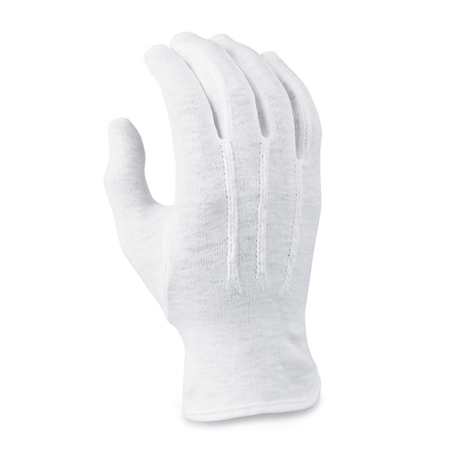 Polish your uniform with our wrist-length cotton gloves. These gloves are constructed of 100% cotton and feature a ribbed back design.